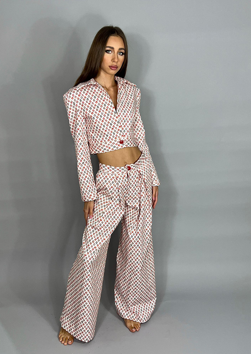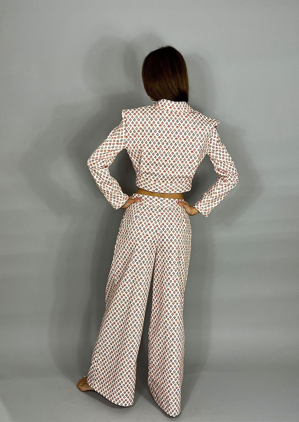 Pantalonii Floral combină confortul și feminitatea într-o piesă ușor de purtat. Realizați din bumbac 100% cu imprimeu delicat cu floricele, au buzunare frontale practice și două cute care se întâlnesc la talie, oferind lejeritate și o siluetă armonioasă. Închiderea este clasică, ca la blugi, pentru un look natural și versatil.